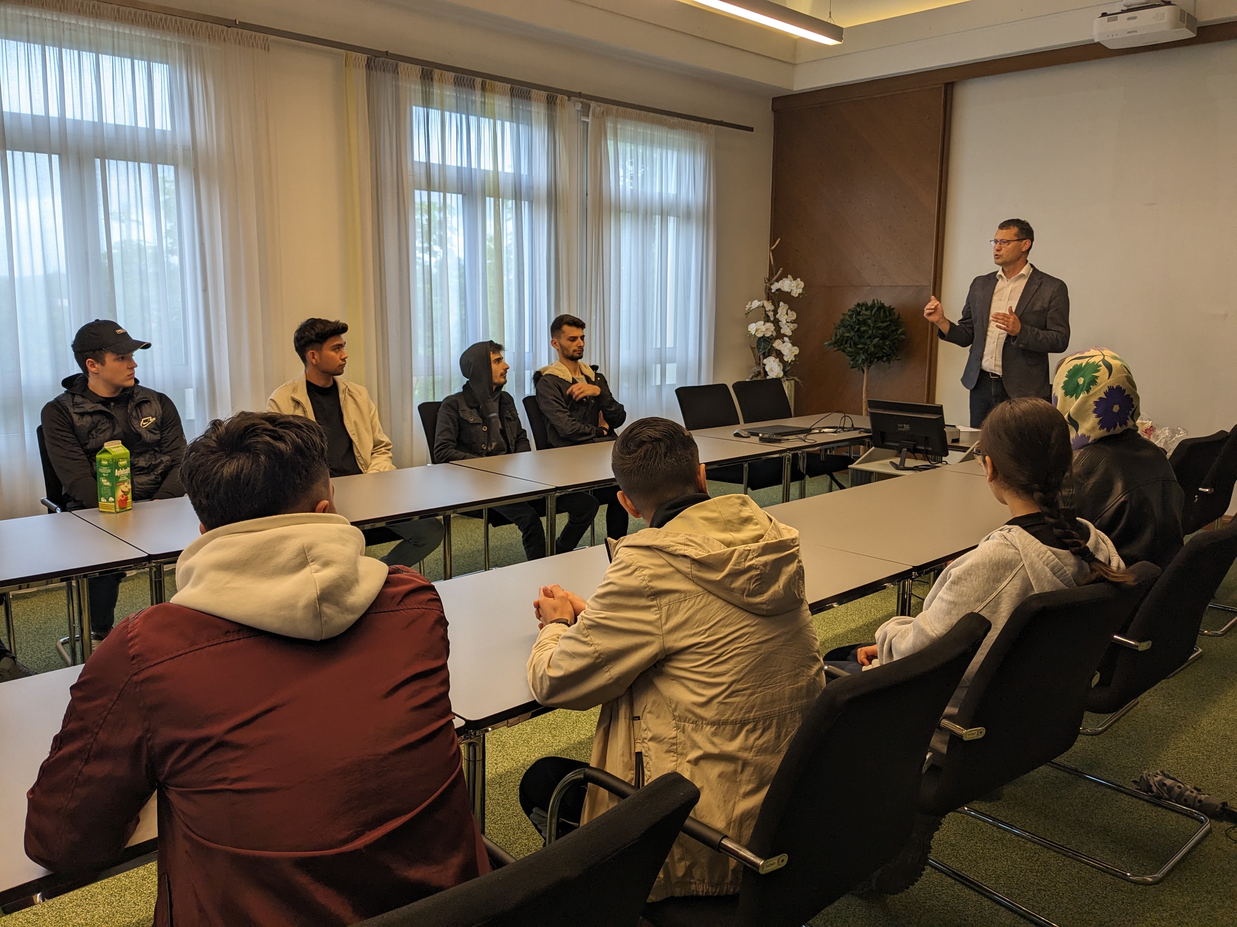 Die Berufsintegrationsvorklasse (BIK V4) des Staatlichen Beruflichen Schulzentrums Höchstädt a. d. Donau besuchte am Freitag, den 17.05.2024 mit der Lehrkraft Frau O. Maciejewski den Bürgermeister der Stadt Höchstädt, Herrn Stephan Karg.