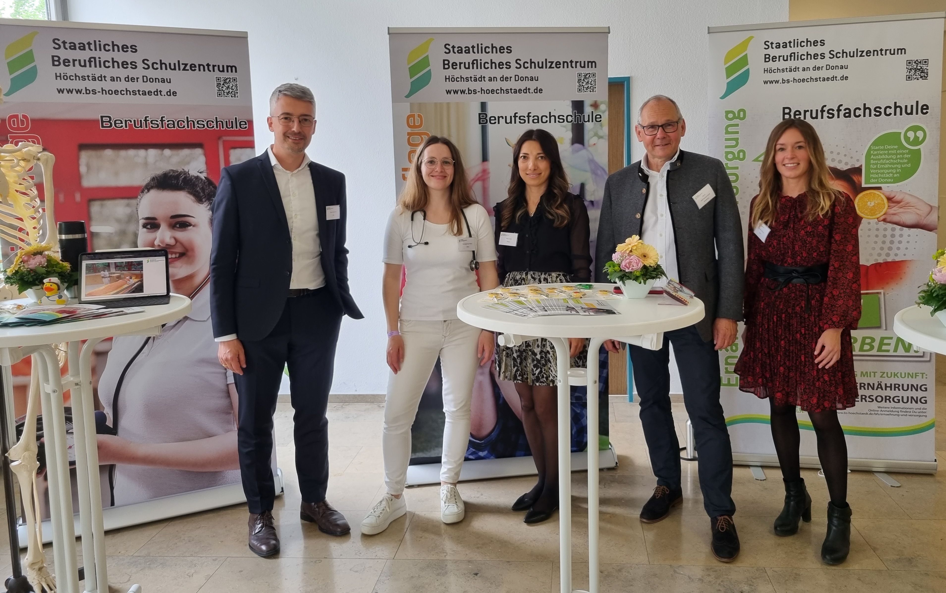 Die Berufsfachschulen für Ernährung und Versorgung, für Kinderpflege und für Sozialpflege waren mit einem eigenen Messestand vertreten (siehe Bild oben). Die Berufsfachschulen waren auch Thema im Rahmen des vielfältigen Vortragsprogramms. Die Bäcker und die Fachverkäuferinnen präsentierten ihr Können in den Fachräumen der Berufsschule. Die Landwirte waren in der Metall- und der Holzwerkstatt aktiv und konnten von den Messebesuchern z. B. bei der Wartung von verschiedenen Kettensägen beobachtet werden. Die Gärtner mit den Fachrichtungen Garten- und Landschaftsbau sowie Baumschule präsentierten sich im Erdgeschoß der Berufsschule und boten gegen eine kleine Spende verschiedenste Tomatenpflanzen an. Unsere Technikerschule für Umweltschutztechnik und regenerative Energien konnte den neuen Integrierten Fachunterrichtsraum mit einem industrietauglichen 3D-Drucker präsentieren.