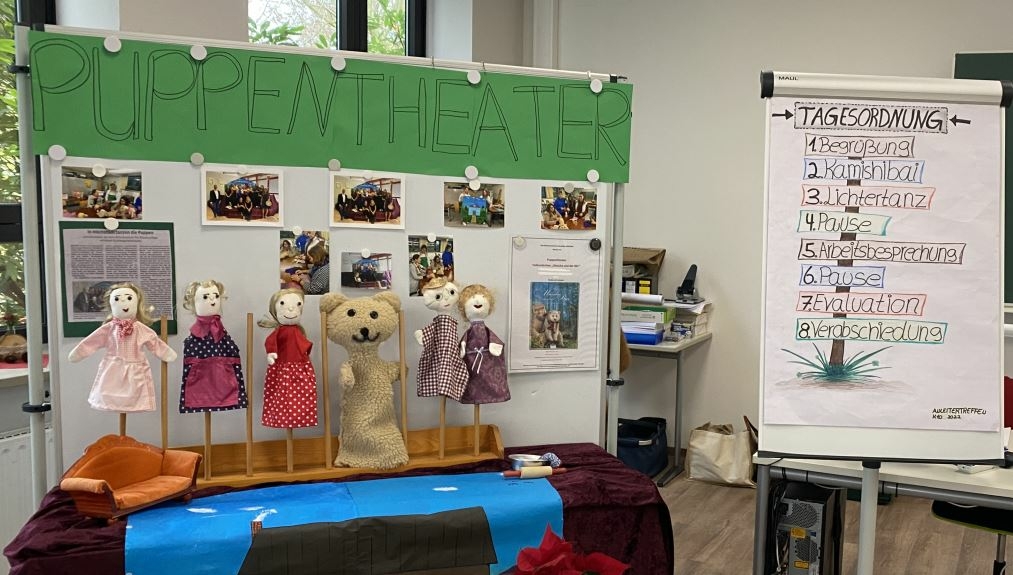 Bei der Begrüßung durch Herrn Bäuml (stellvertr. Schulleiter) und Frau Förg (Fachbetreuung Sozialpfkege, Kinderpflege) kam daher der Dank für die hervorragende Arbeit nicht zu kurz. Die Schülerinnen Maria und Linda aus der K10b brachten sodann gekonnt ein Kamishibai (Erzähltheater) zur Vorführung. Die Geschichte ,,Mama Quark ruft ihre Kinder‘‘ machte allen Anwesenden gute Laune. Mit einem Lichtertanz sorgten die Schüler*innen der K10a bei allen Anwesenden für eine positive Stimmung.