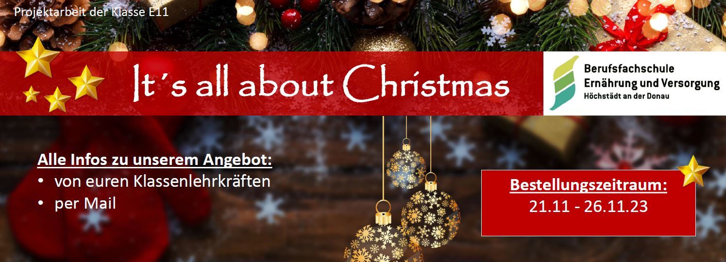 Die 11. Klasse der Berufsfachschule für Ernährung und Versorgung führt im Fach "Projektorientiertes Arbeiten" mit der Lehrkraft Frau Storr eine weihnachtliche Verkaufsaktion durch. Schülerinnen und Schüler sowie Lehrkräfte unseres Schulzentrums konnten aus einem reichhaltigen Angebot adventlich-weihnachtlicher Produkte wählen und Bestellungen abgeben. Nun wird bedarfsbezogen produziert und ab Anfang Dezember ausgeliefert.