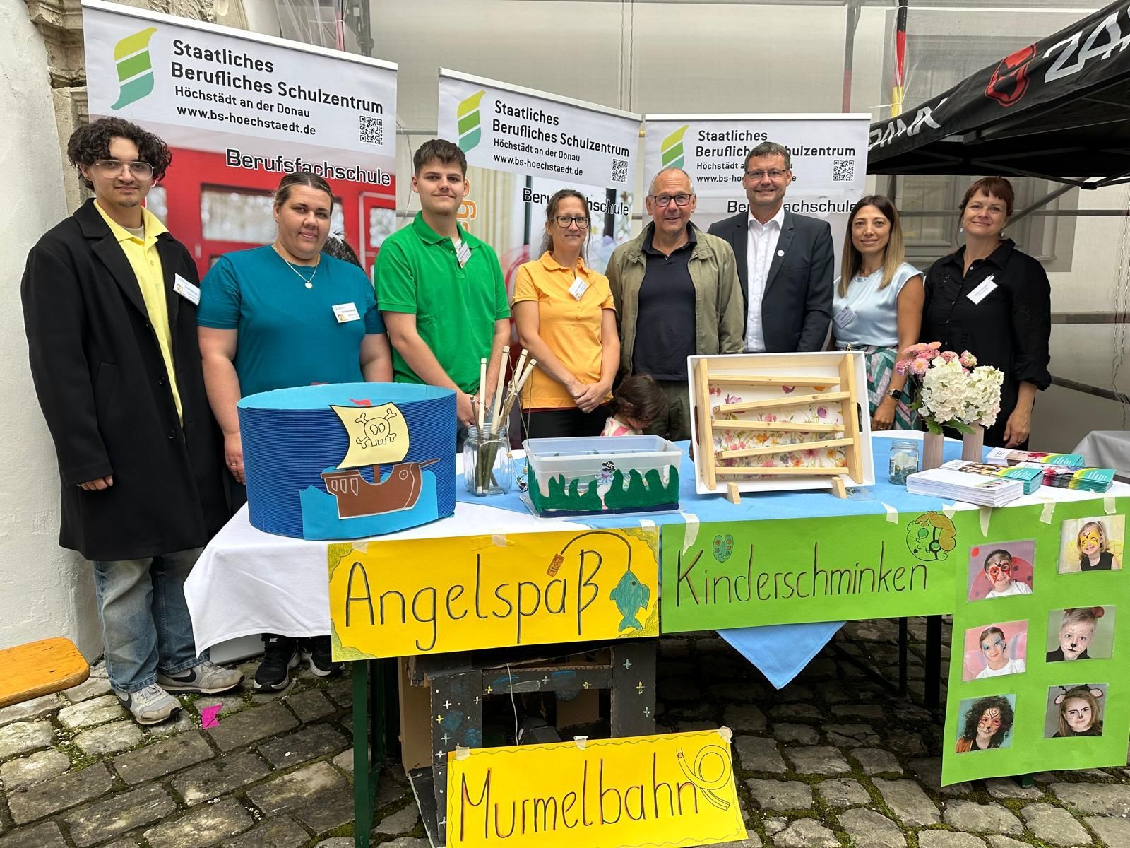 Fast alle Kinder, die mit ihren Familien am Sonntag, 07. Juli 2024 die Frauenwelt auf Schloss Höchstädt besucht haben, waren mit aufwändigen und kreativen Motiven geschminkt. Wie kam es dazu? Die Schülerinnen und Schüler der Berufsfachschule für Kinderpflege (Klasse K10a) haben gemeinsam mit der Fachbetreuerin Sona Klein im Schlosshof einen großen Stand der drei Berufsfachschulen betreut und neben dem Schminken auch über die Ausbildung informiert. So gab es z.B. Produkte aus dem Unterricht zu bestaunen.