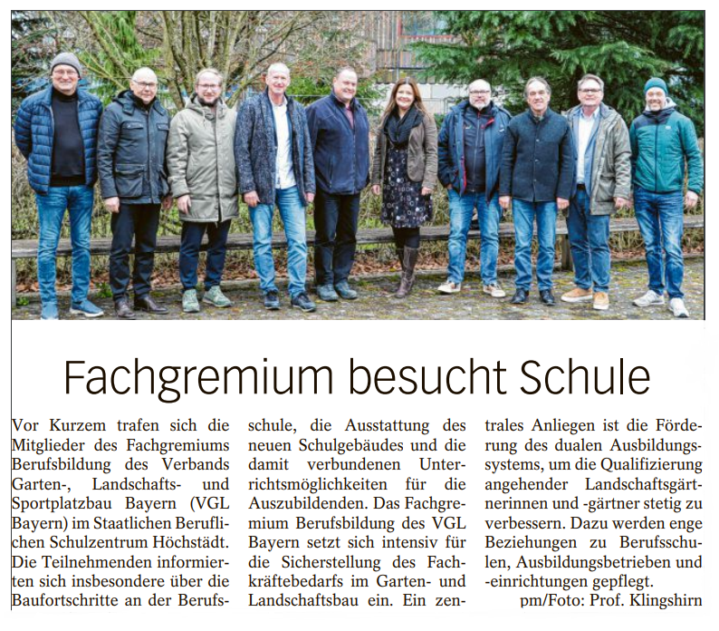 Fachgremium Bildung des Gartenbauverbands besucht Berufsschule Höchstädt Artikel aus dem Dillinger Extra vom 25.01.2025
