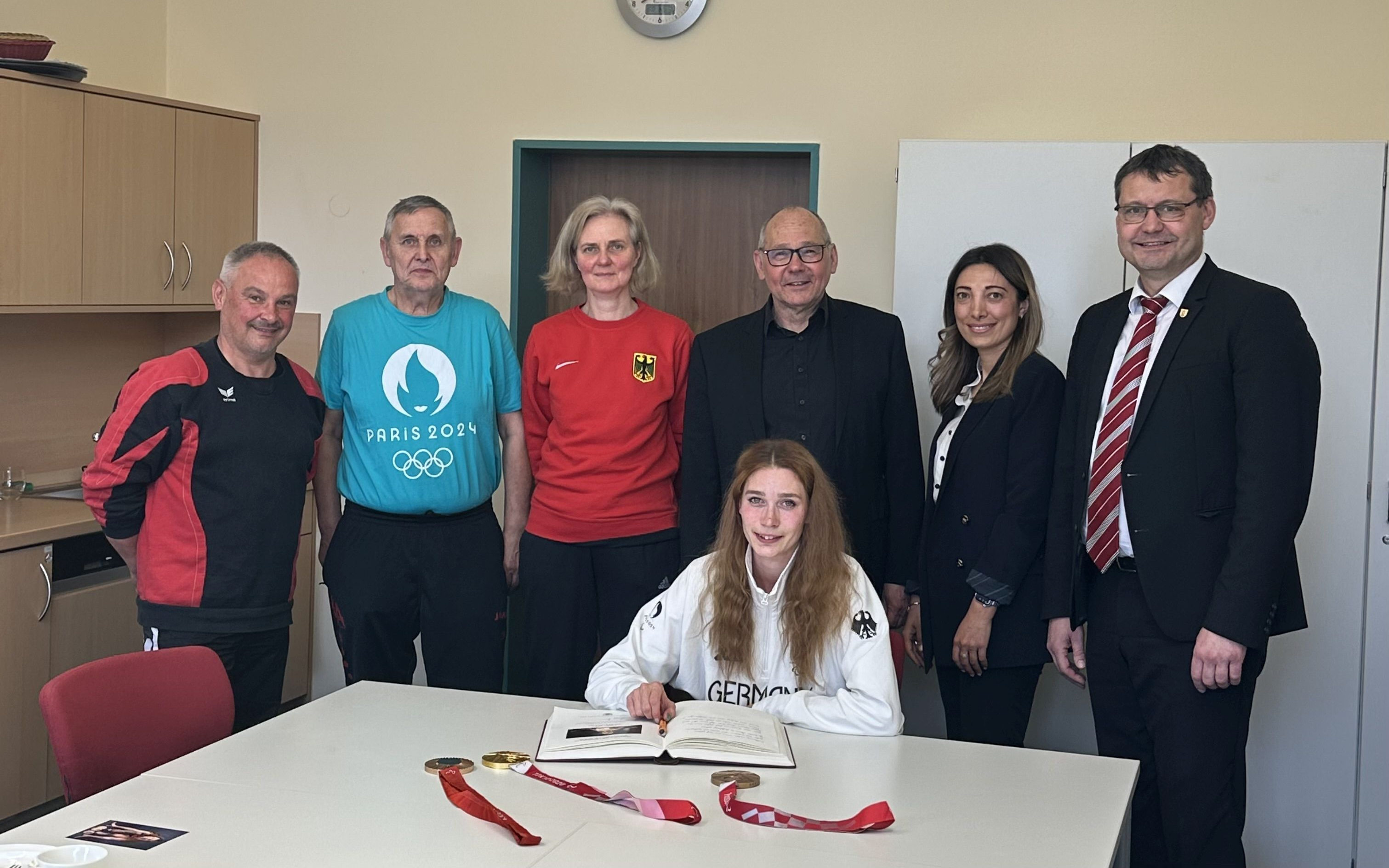 Die mehrmalige Weltmeisterin und Paralympic-Siegerin hat die Schülerinnen und Schüler der Abschlussklasse der Berufsfachschule für Kinderpflege in Höchstädt besucht und in persönlichen Worten über ihren bemerkenswerten Weg zur Spitzensportlerin berichtet. Im Rahmen des Unterrichts in Sport- und Bewegungserziehung hat die Lehrkraft Martin Rehm, Frau Ave zu einer Gesprächsrunde mit der Klasse eingeladen. Die Schülerinnen und Schüler haben sehr interessiert die Medaillen aus Tokio (2021) und Paris (2024) begutachtet und waren beeindruckt von der aufgeschlossenen Sportlerin.