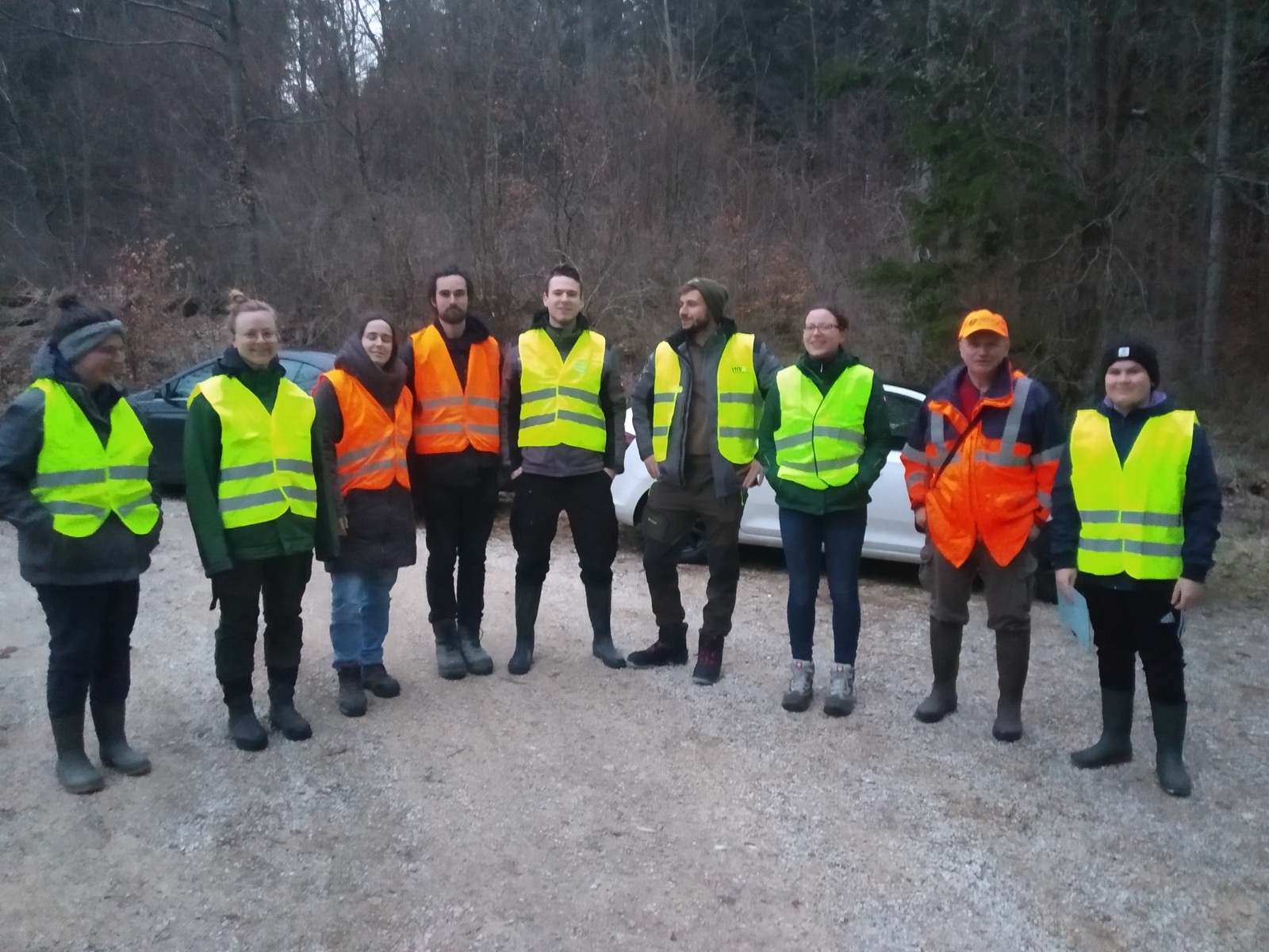 Die TK 1 hatte zum 12. März 2024 die Exkursion „Amphibien“ auf dem Abendprogramm stehen. Um kurz nach 18 Uhr traf man sich nach dem Ort Zöschingen an einem kleinen Parkplatz. Die Ausrüstung bestand aus wetterfester Kleidung + reflektierender Westen und einigen Eimern.