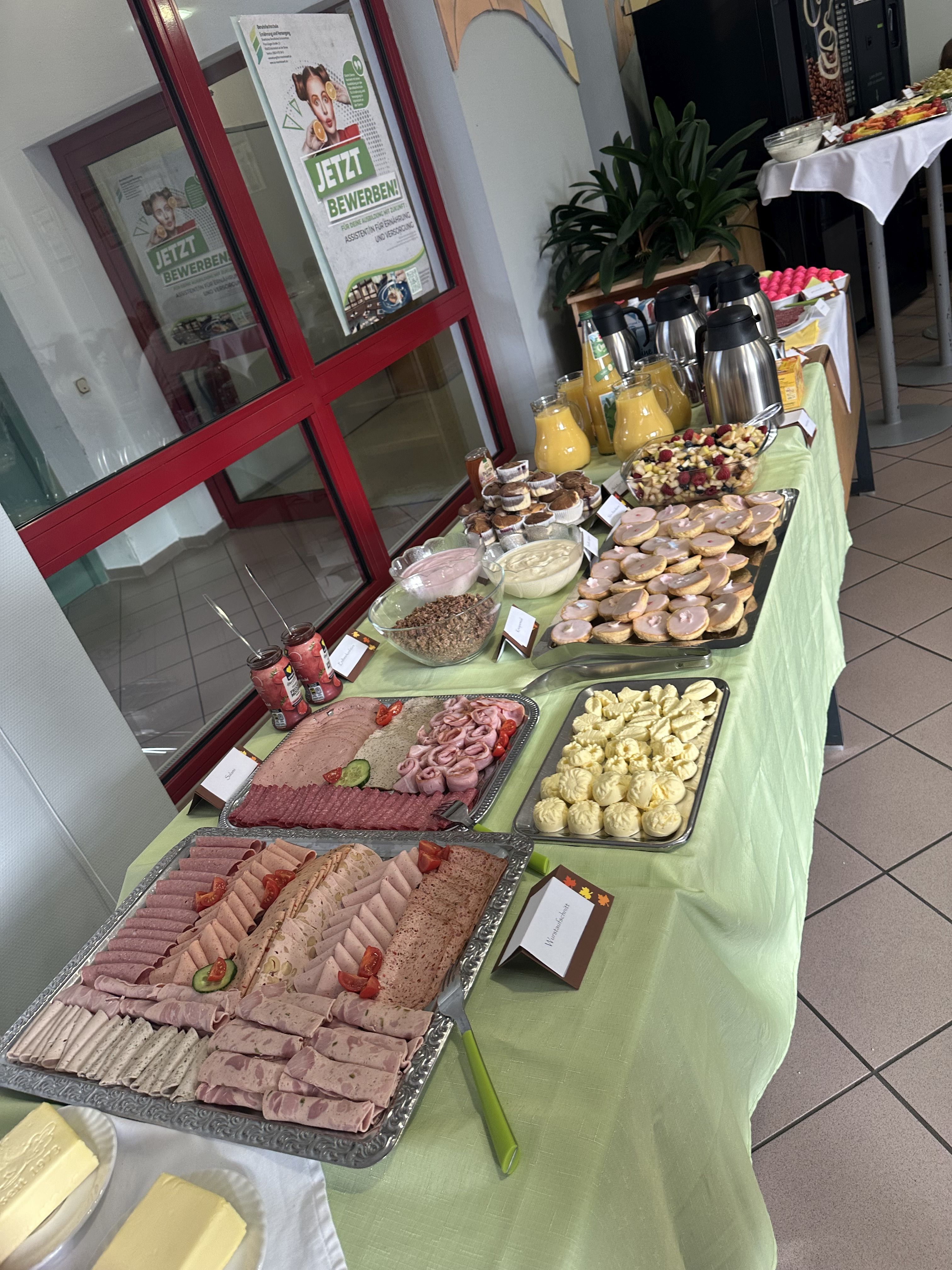 Wochen zuvor begannen die 11. Klässler mit den Vorbereitungen, die ein abwechslungsreiches Frühstück mit frischen Brötchen, Aufschnitt, Käse, Obst und Getränken umfassten. Der Frühstücksraum wurde festlich dekoriert, um eine einladende Atmosphäre zu schaffen.
