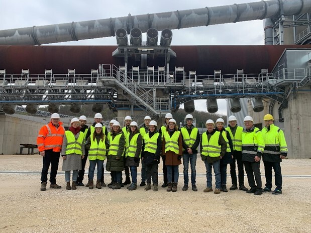 Das Bild zeigt die Besuchergruppe vor dem neuen Drehrohrofen 8.